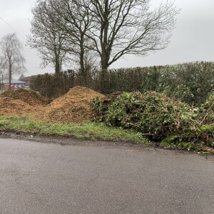 Plastic bags, mostly garden waste but also household rubbish. Field gateway on lane running off A41 opposite junction with Station Road before Humphreston Farm.