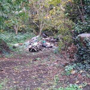 Approximately 12-14 car tyres that have been there for 2 weeks now.