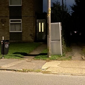 At the end if Purdis Avenue Various items have been dumped including a sofa and an oven. The items have now been moved by somebody from the middle of the road to on the verge where they are still