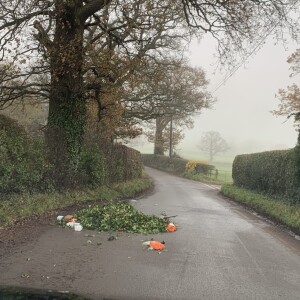 Empty nitrous oxide canisters. Spread all over the road and now down the road. I stood on them in the dark. Dangerous. Must be upwards of 59-100