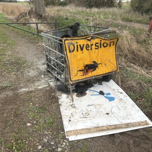 Old electrical item on right side of bank - right bank on forty foot drain pathway. Old tractor tyre too.
