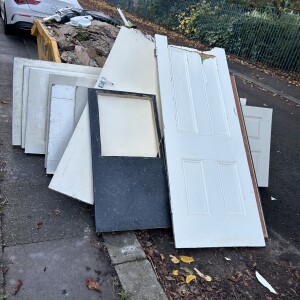 Looks like a big pile of soil has been tipped in this area. A wheel barrow and pallet has also been left.