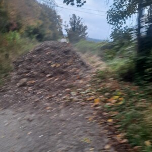 I was walking in the woods and came across all there tyres just dumped there. It blocks the entrance way to what I think is a kind of sheds with electrics in that people often do work in. It also goes partly onto the path that we where walking down.