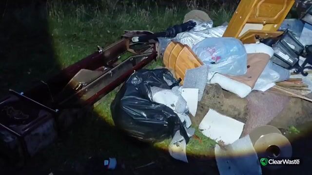 One tyre, one medium metal box (fridge?) and one extra large plastic food container. Massive catering size mango chutney!! In separate locations on the west side of the lane, in the hedge.