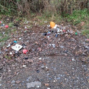 Building and garden waste. Some a fire hazard and directly next to a dog training centre. Items putting any animals arriving at risk of injury.