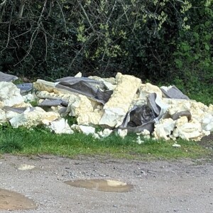 Go down Camp Farm Road in Aldershot and turn down into Morlands Road off it (dead end road). It’s on right 2nd photo is a black bag of metal poles 3rd photo is three small piles of rubble