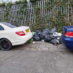 Cycle/foot path on Pencarn Lane can be accessed either from Morgan Way, Sir Charles Cresc. Or from Morgraig Avenue, Celtic Horizon, . Misc rubbish, glass jars, paper bags, domestic rubbish.