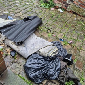 General house waste including rotting food, garden waste.Address found in rubbish is as follows.Micheal Watson, No1 building maintenance,14 greenway, Bolton,BL1 8UD.Neighbours said they seen a man set rubbish on fire then walk back towards Greenway.