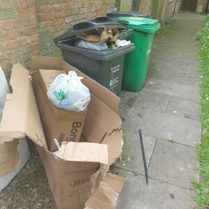 Bag of rubbish bottles appeared 5.2.23 early hours and later clothing added