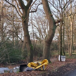 Large yellow dumpy bag blocking entrance to Bridleway off Wormley West End Road al bottom of Holy Cross Hill next to Tudor Farm. The horses don't like to go past it!