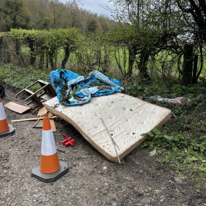 35 Beechwood drive mud and rubbish dumped on area to back of Southfield mobile homes. Tyre marks confirmed from property from digger machine used were work being done. Also rubbish is coming down into our mobile home park.