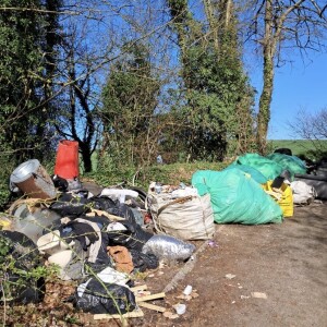 Flytipping of tyres & litter in layby. SOS phone also knocked over