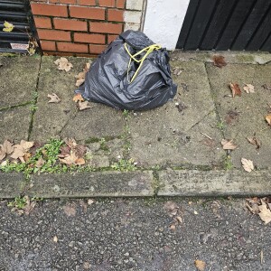 Mattress and a shopping trolley with other items dumped on pavement. There's also been a sofa dumped around the corner on the public green next to conifers behind Somerton Road near to end of Oakhill Close