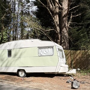 On the verge just after the width restriction on Lyne Road. We have moved it out of the road to the verge.