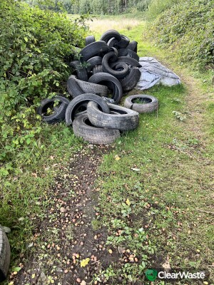 There are three dumping spots on a dirt track fully accessible by van, hence the illegal dumping. The tyres dumped are further away round the corner in a fourth spot