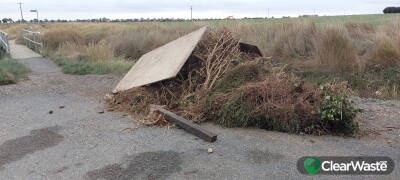 Do what they likies have dumped garden waste, fence and Sterling boards across two parking spaces in the layby