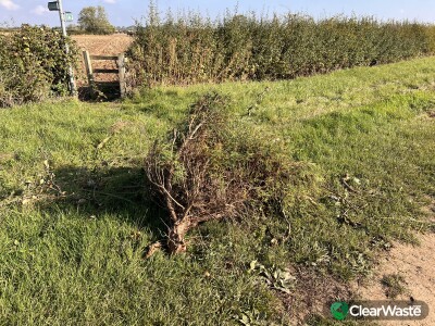 Garden waste Same as reported yesterday but on a different road On left hand verge when travelling east next to footpath sign