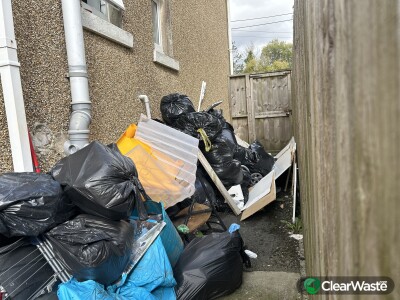 Household rubbish dumped been there for several months RATS Spotted daily Must be removed ASAP As health risk as children living at the property and next door