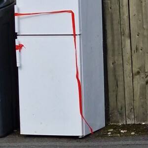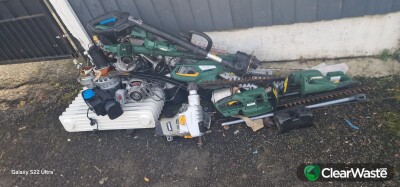 Broken radiator, garden tools which are dangerous to be on the pavement as children play there