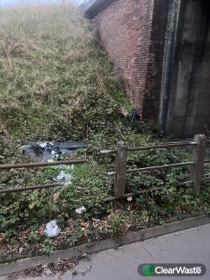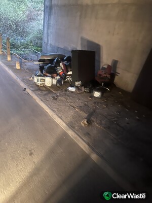 Flytipped household clearance type waste tipped under the A452 bridge on the Northwarwickshire Council side of the A452. There is also waste in the verge 3 metres away