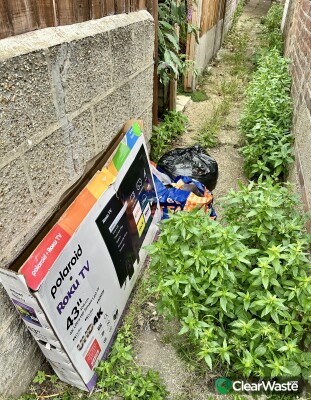 TV box and shopping bags. In the alleyway behind 11 Stacy Rd, NR3 1JN