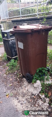 Brown Garden waste bin full of household waste - very heavy On Lane End next to the litter bin