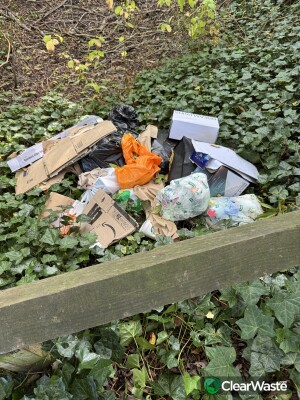 Bags of rubbish and empty Amazon packaging have been dumped into the little pond which is between Bonner Close and Hawker Avenue, Oadby, Leicester
