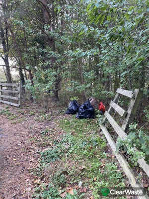 Bags of rubbish abandoned next to layby