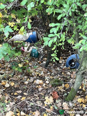 Usual place. In the ditch opposite the lay-by. Gas canisters and bath tap.