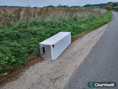 Fly tipped large free standing freezer dumped in passing point.