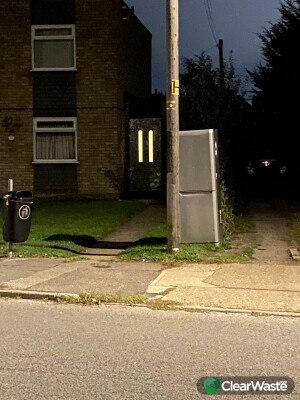 A silver fridge freezer has been dumped here since about 6 weeks ago.
