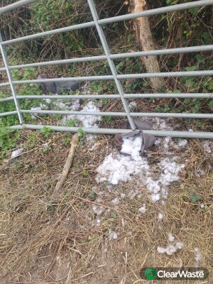 Flytip of what looks like cushions. Some broken with contents spilling out