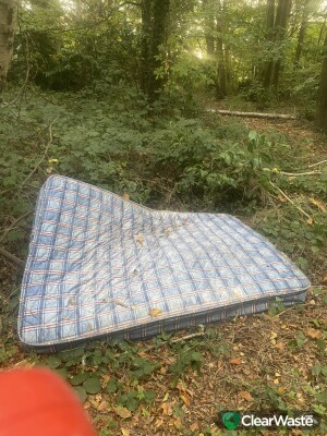 Mattress on footpath in woodland between Woods Edge and Holly drive