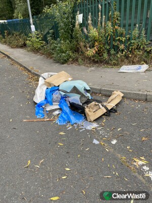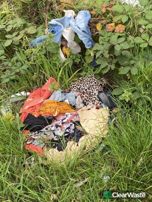 General waste dumped on the highway near junction of George St and Bankhouse Lane. Clothing etc 20 yards from junction in the verge