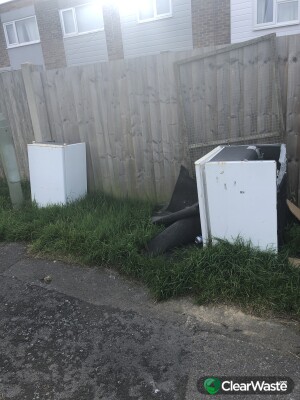 Fridges. Been here since beginning of the year. Council aware stickers went on in April but still here.