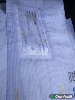 Mainly household waste. Chairs, papers and cardboard. Plastic tubs. Included mail.