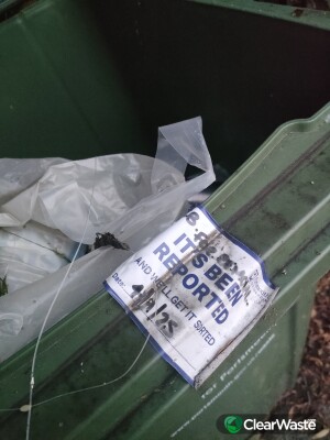Green bin with all sorts of waste inside. Originally reported 04/09!