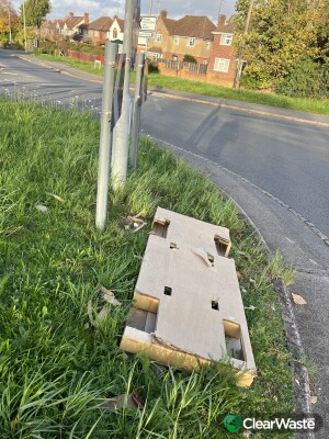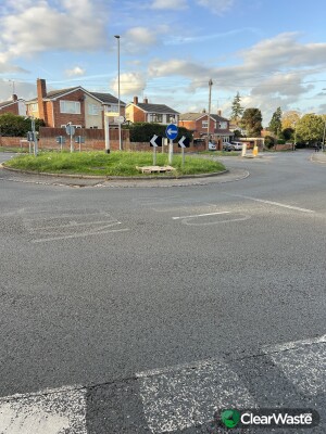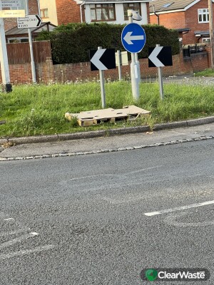 Large piece of Building waste approx 100cm x 50cm found on roundabout at junction of Elm Lane & Elm Road.
