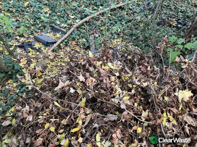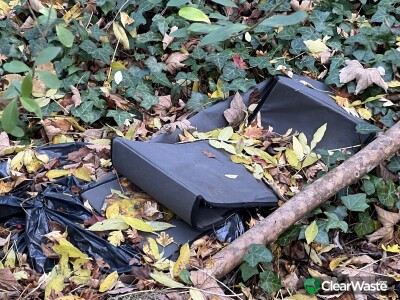 Garden waste, cut bushes, branches & leaves. Also some plastic & foam type household waste. Found on left down the narrow path whilst heading from Elm Lane heading towards the reservoir by the stile.
