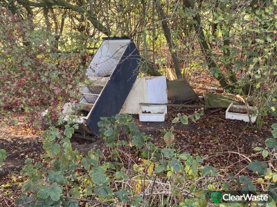 Historic waste including truck tyre, refrigerator and cabinets. Located off A165, opposite junction to Crab Tree Lane About 200 yards down Byway Open All Traffic.