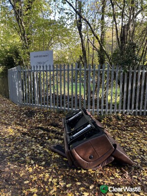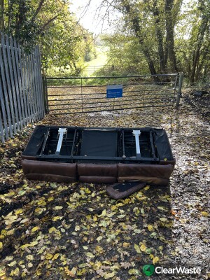 Sofa dumped at the entrance to the water pumping station. It's on the public road, not the private business.