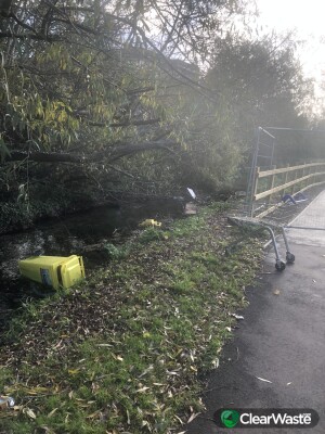 The waste can be found at drip.gives.remind( what3words). It consists of a shopping trolley, waste bin as per picture