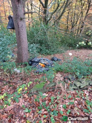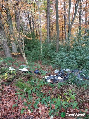 Can't miss it, second time it's been reported by me. It's on the right hand side going up the hill with Agden reservoir on the right. If you get to the lodge on the left it's too far. Household rubbish loads of it