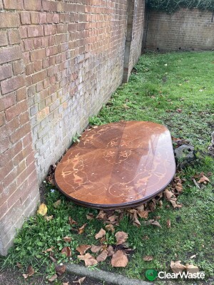 Large table top dumped onto public grass area on Tyson Road near to No.28