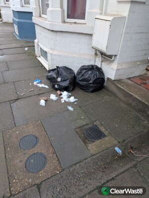 Outside 93, already ripped open the day after bin day collection