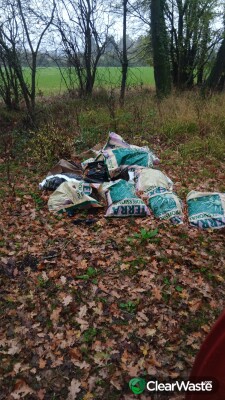 Bags of waste (plastic and plant growing items), dumped on a public byway. Access possible for a transit tipper type vehicle, from the B1051. Gravel surface, still firm when wet.