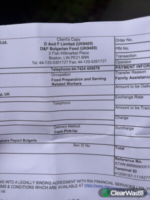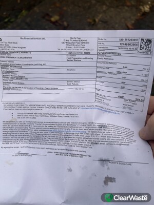 Shop waste dumped on the river bank invoice in the waste shows address of the business who dumped it