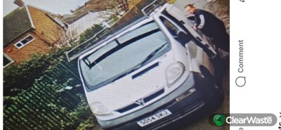 Behind private garage someone has fly tipped mixture of rubbish. Number plate of fly tipper is S054 SKJ.