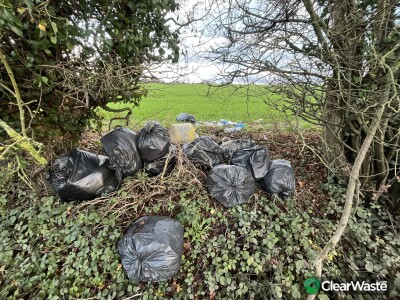 Around 20 large black sacks. Also Decorators rubbish and plastic buckets