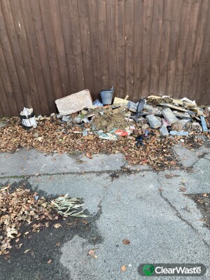 Builders Waste and Rubble dumped on pavement on Blackheath Drive, Leasowe close to junction with Reeds Lane, Leasowe. Been there a while.